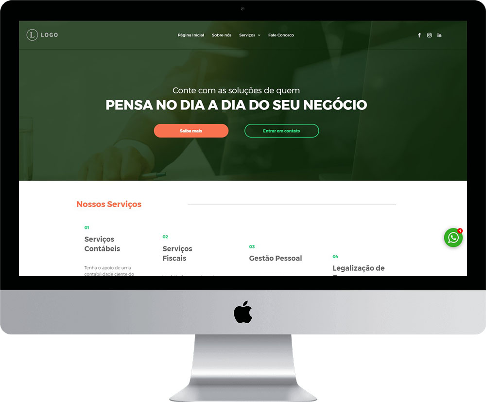 • Botões de direcionamento para Mídias Sociais já existentes – Facebook, Instagram, Linkedin;