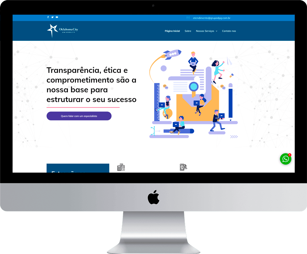 • Botões de direcionamento para Mídias Sociais já existentes – Facebook, Instagram, Linkedin;