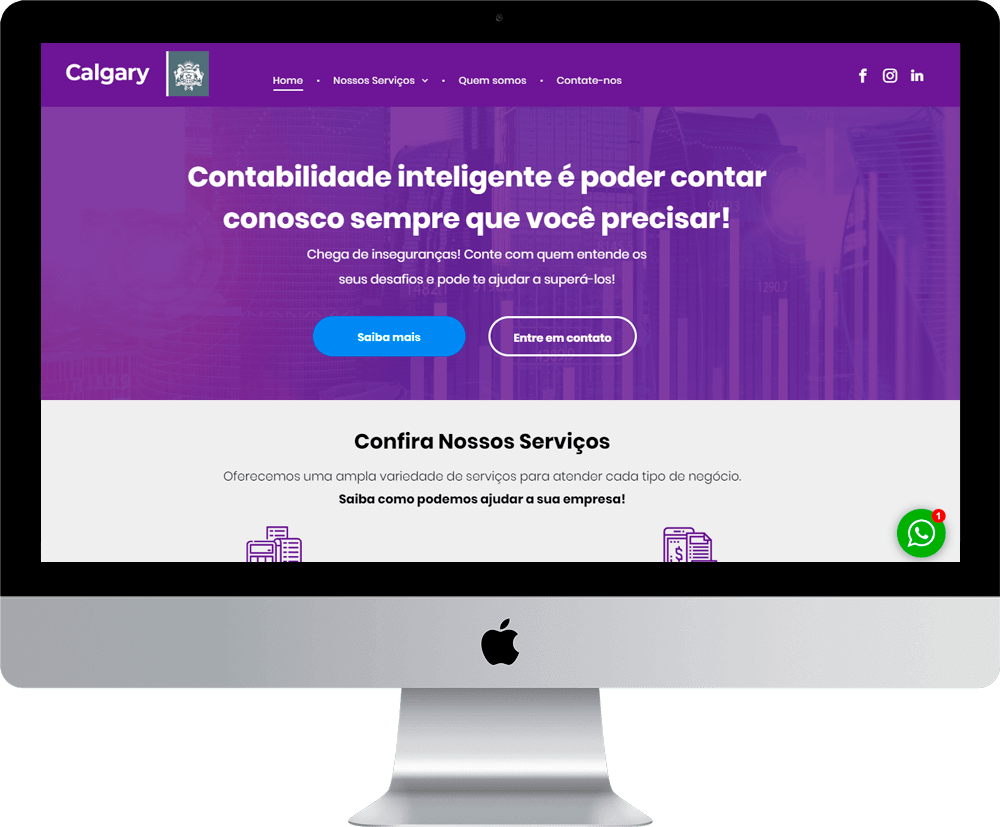 • Botões de direcionamento para Mídias Sociais já existentes – Facebook, Instagram, Linkedin;