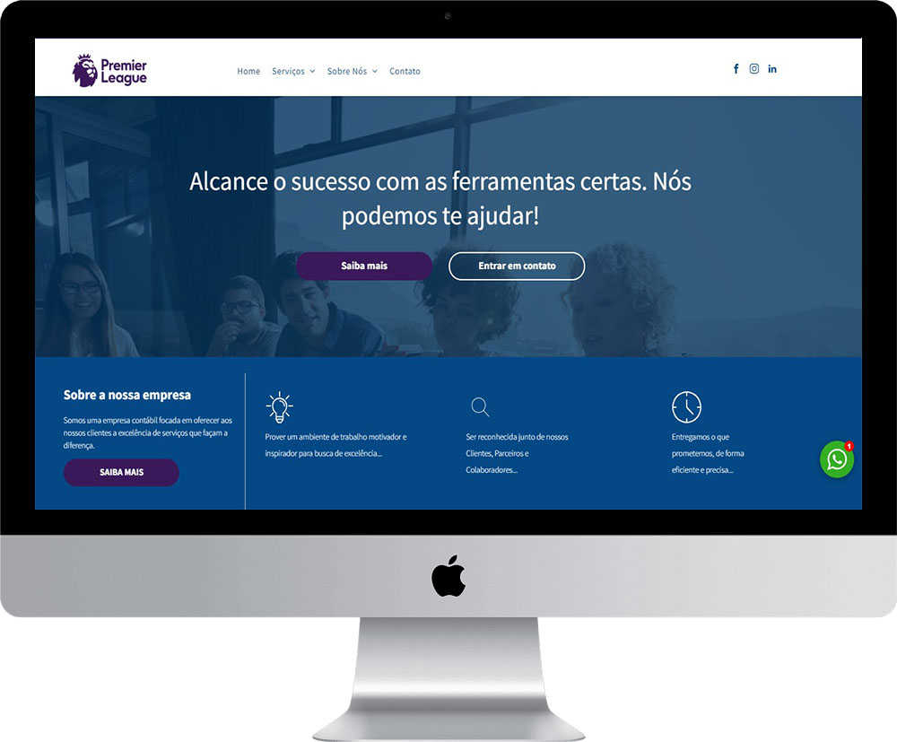 • Botões de direcionamento para Mídias Sociais já existentes – Facebook, Instagram, Linkedin;