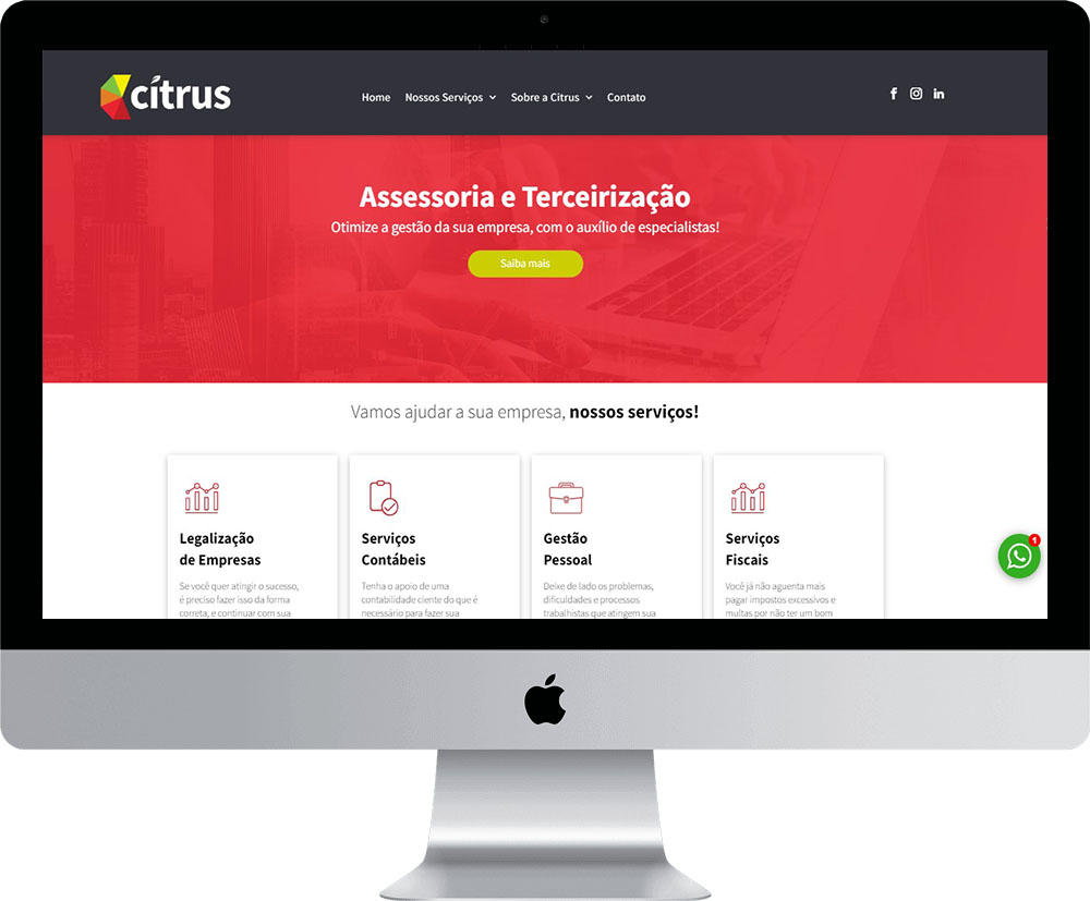 • Botões de direcionamento para Mídias Sociais já existentes – Facebook, Instagram, Linkedin;