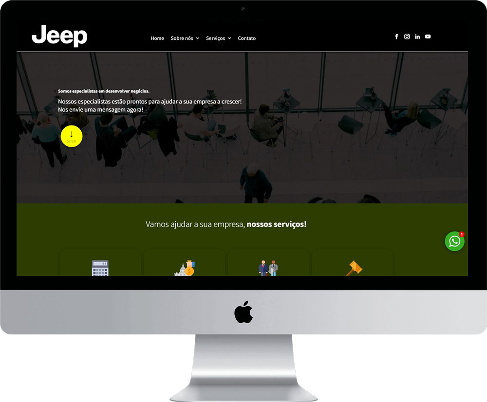• Botões de direcionamento para Mídias Sociais já existentes – Facebook, Instagram, Linkedin;